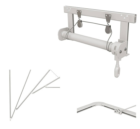 Tenda a capottina con elementi a scalare per consentire una maggiore sporgenza con minore ingombro in altezza